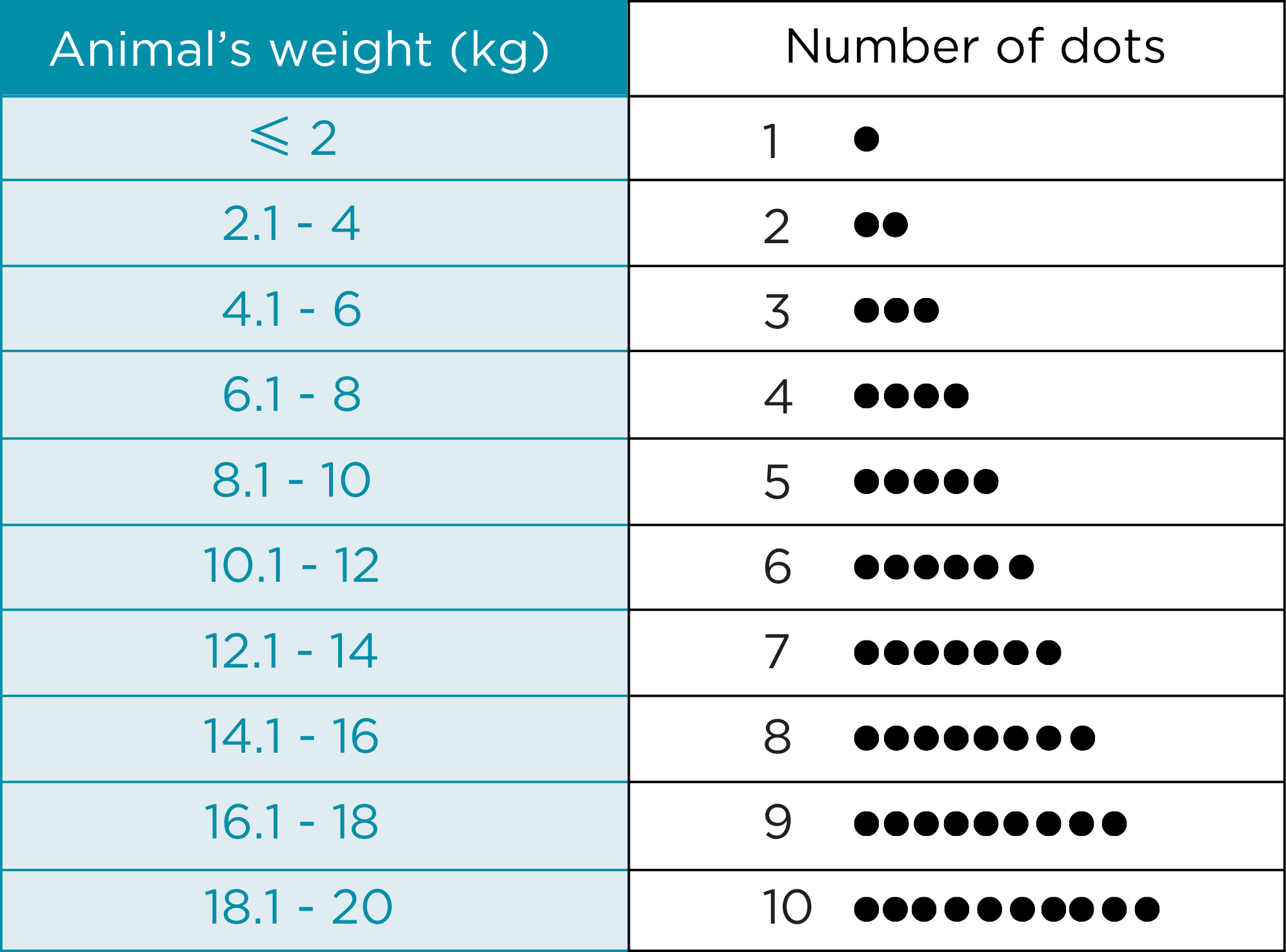 - One syringe per 20kg of animal